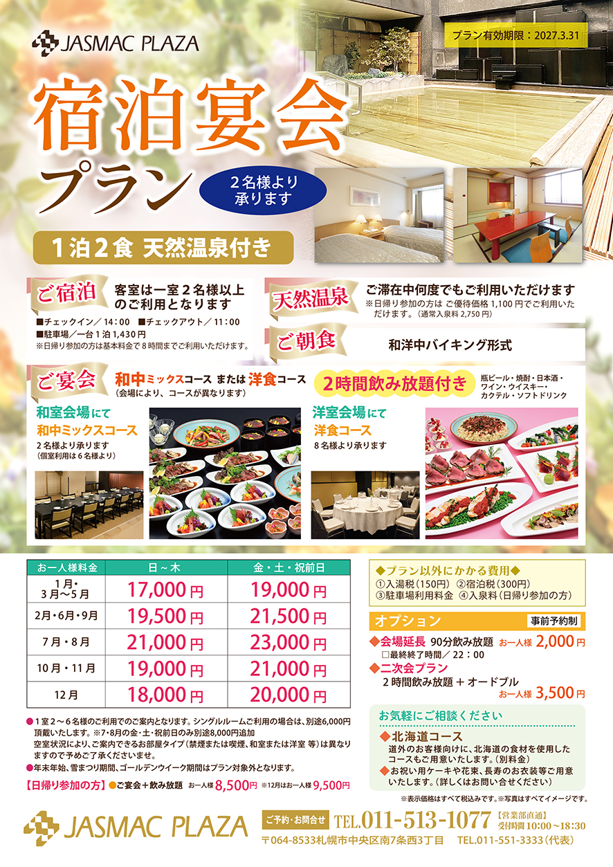 ●年末年始、雪まつり期間、ゴールデンウイーク期間はプラン対象外となります。