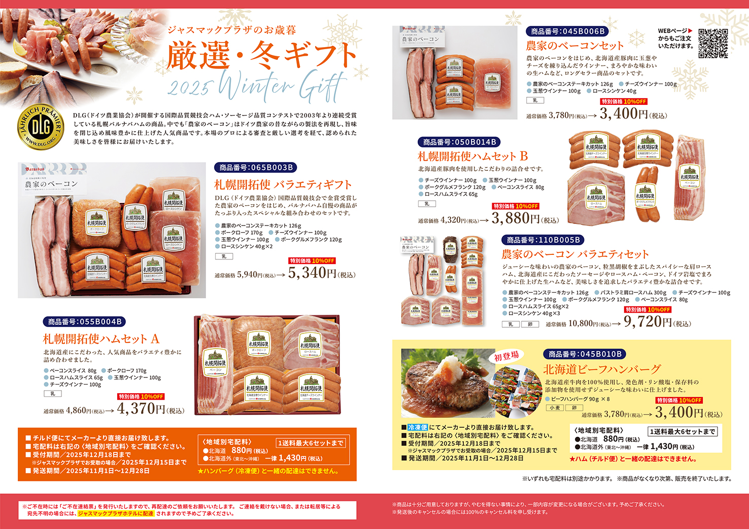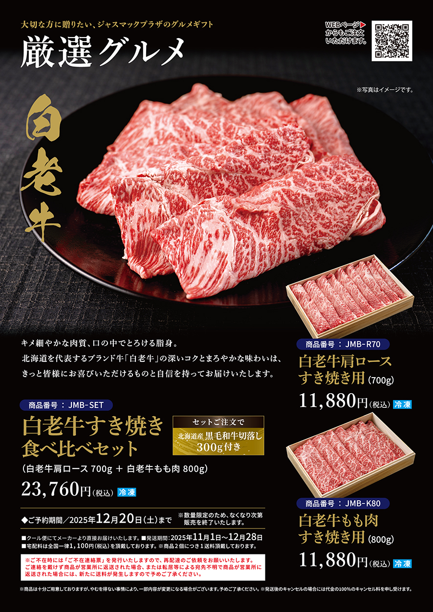 「チルド 配送」または「ジャスマックプラザでお引き取り」